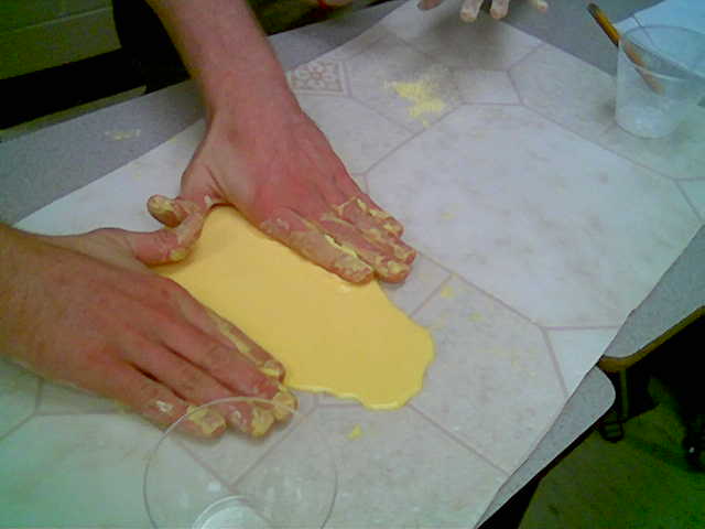 CORN STARCH SLIME II -- The slime is crumbling next to the student's warm left hand